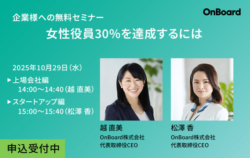 10月29日(水)に企業様への無料セミナー「女性役員30%を達成するには」をオンラインにて開催いたします。